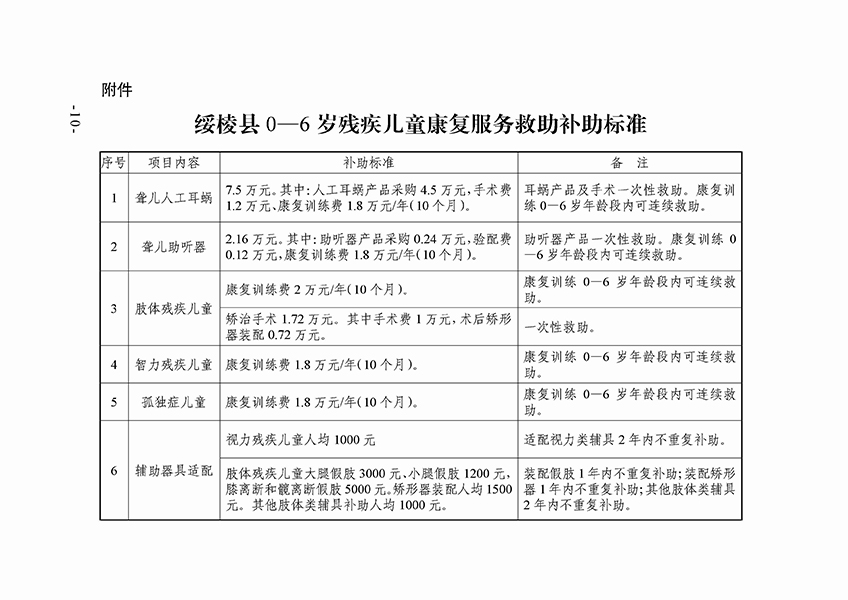 附件:绥棱县0—6岁残疾儿童康复服务救助补助标准