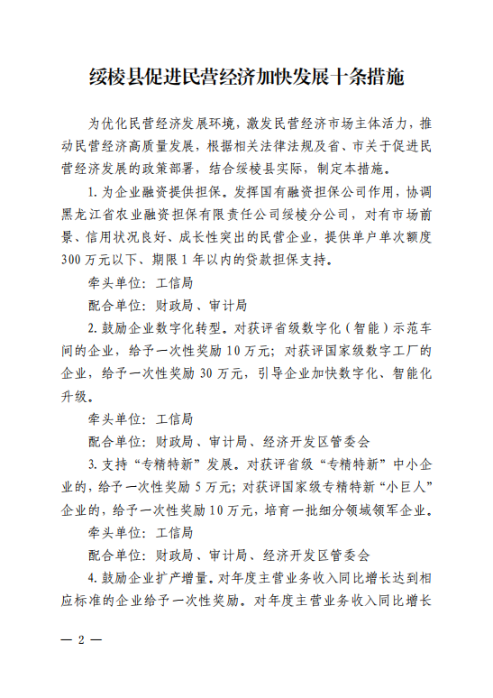 关于《绥棱县促进民营经济加快发展十条措施》的政策解读
