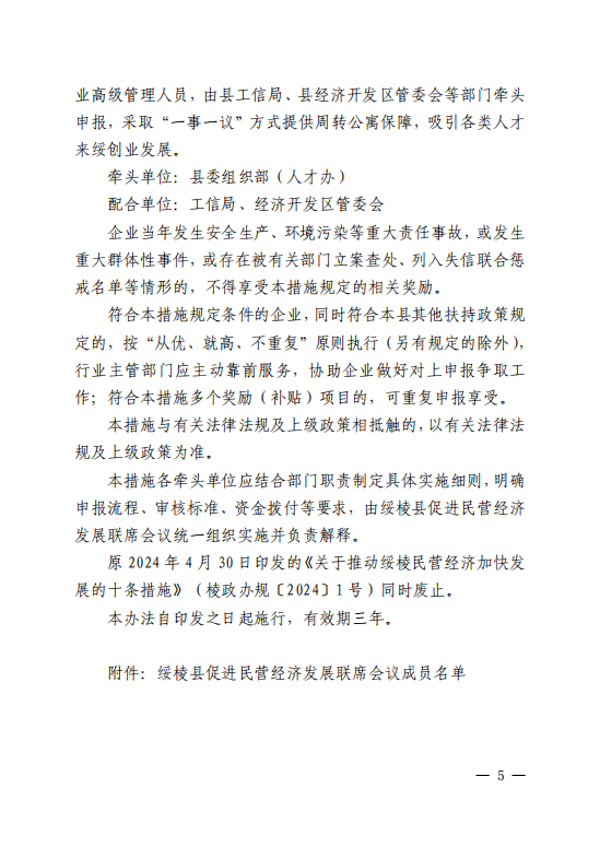 绥棱县人民政府办公室关于印发《绥棱县促进民营经济加快发展十条措施》的通知