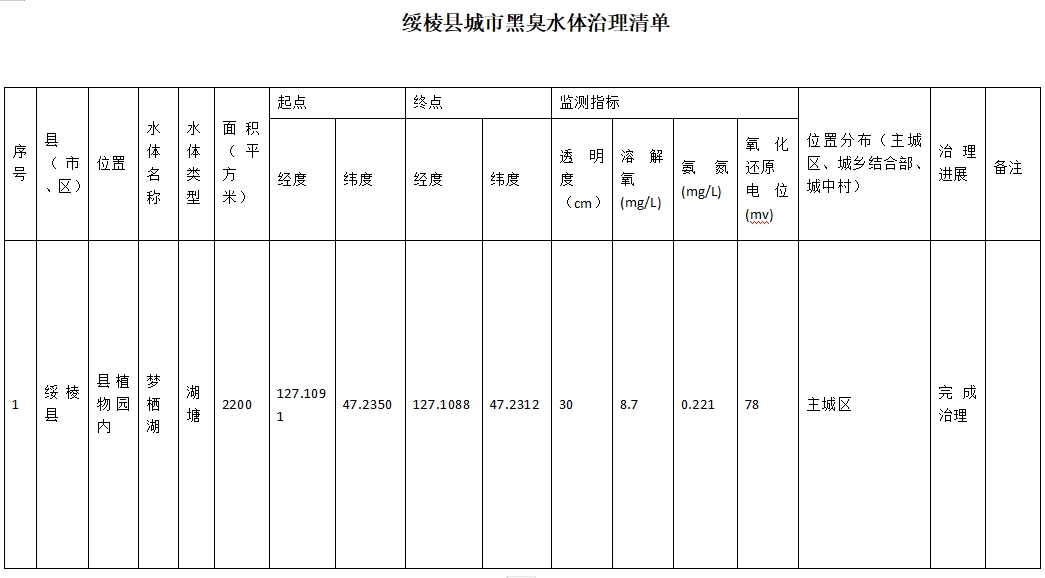按照黑龙江省生态环境厅《关于规范全省县城黑臭水体整治相关工作的通知》(〔2024〕1436号)要求,我县开展了梦栖湖黑臭水体整治工作,现将具体整治情况公示如下: