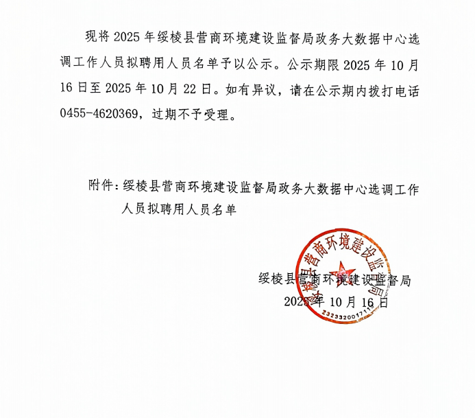 关于绥棱县政务大数据中心拟聘用人员的公示