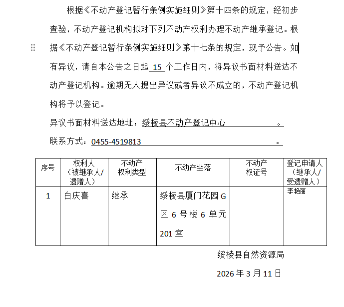 继承(受遗赠)不动产登记公告