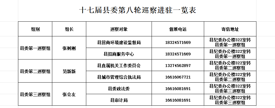 根据县委关于巡察工作的统一部署,十七届县委第八轮巡察对县委政法委、县直属机关工作委员会、县招商服务中心、县审计局、县城市管理综合执法局等5个单位开展常规巡察,对县营商环境建设监督局开展巡察“回头看”。10月20日,3个巡察组完成进驻工作。