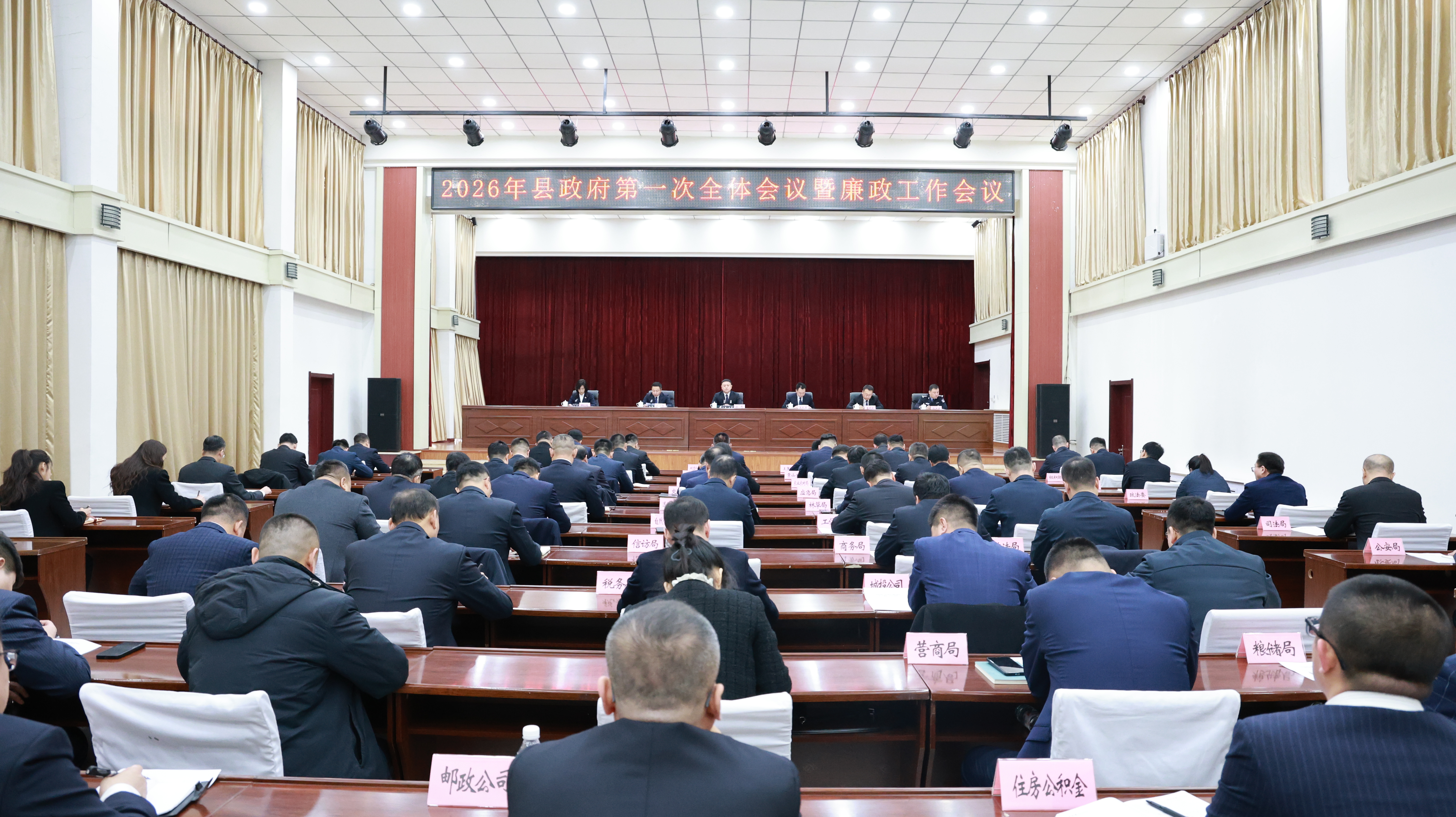3月10日,县委副书记、县长徐野主持召开2026年县政府第一次全体会议暨廉政工作会议,深入贯彻落实党中央和省、市有关会议精神,确定省、市和县《政府工作报告》重点任务分工,安排部署政府系统党风廉政建设工作,动员全县上下以“开局就是决战、起步就要冲刺”的姿态,确保全年各项目标任务高质高效完成。潘忠亮、解松梅、张洪建出席会议。李长勇、盖晓东列席会议。
