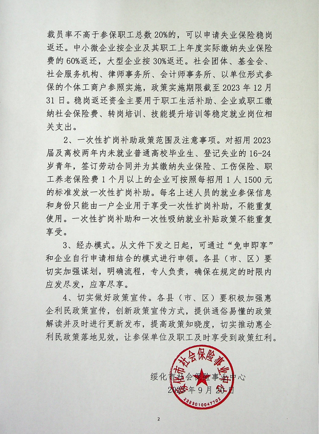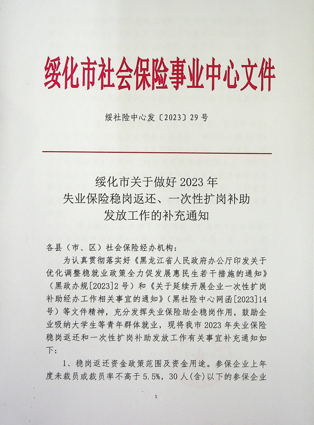 绥化市关于做好2023年失业保险稳岗返还、一次性扩岗补助发放工作的补充通知