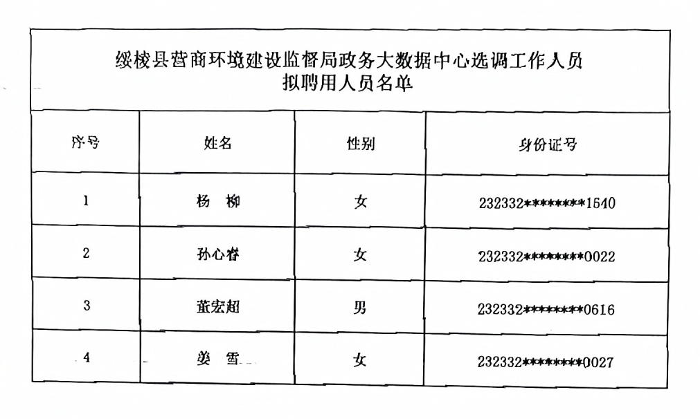 关于绥棱县政务大数据中心拟聘用人员的公示