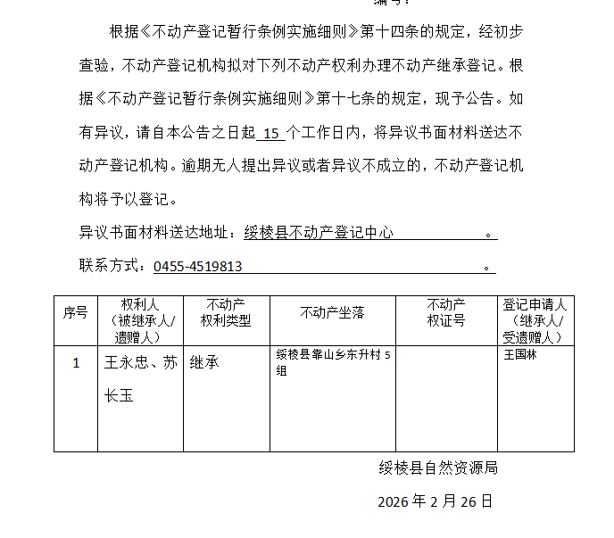 继承(受遗赠)不动产登记公告