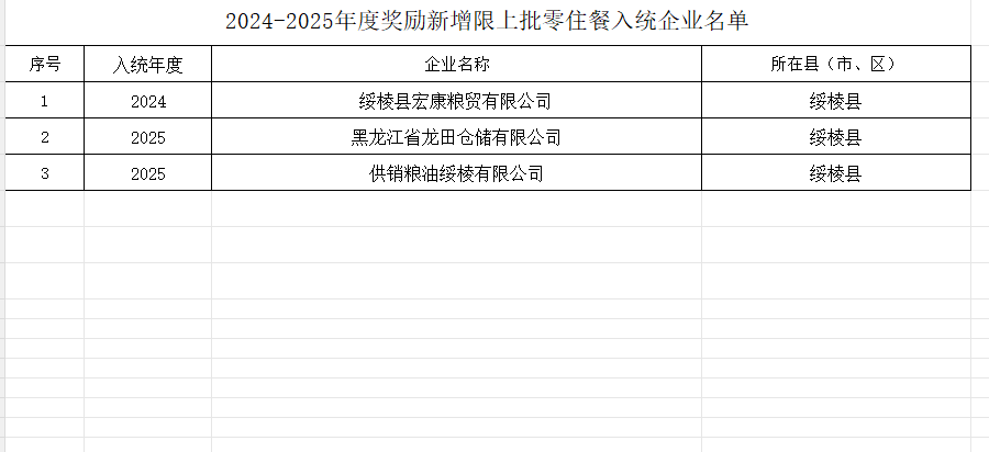 绥棱县申报2024-2025年度新增限上批零住餐奖补资金企业信息公示