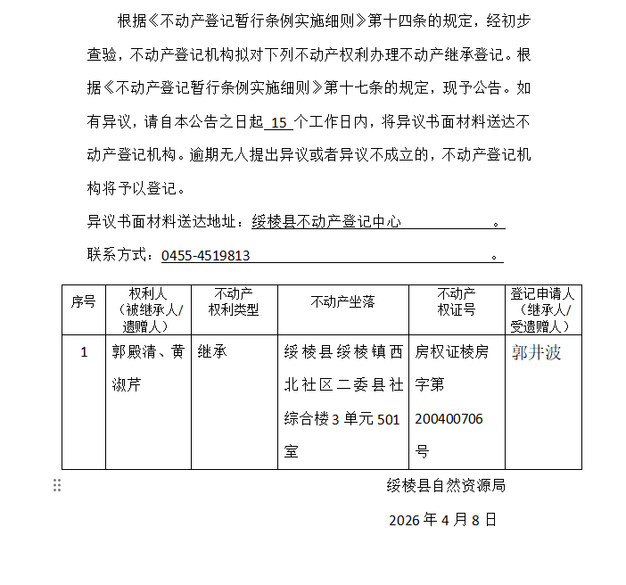 继承(受遗赠)不动产登记公告