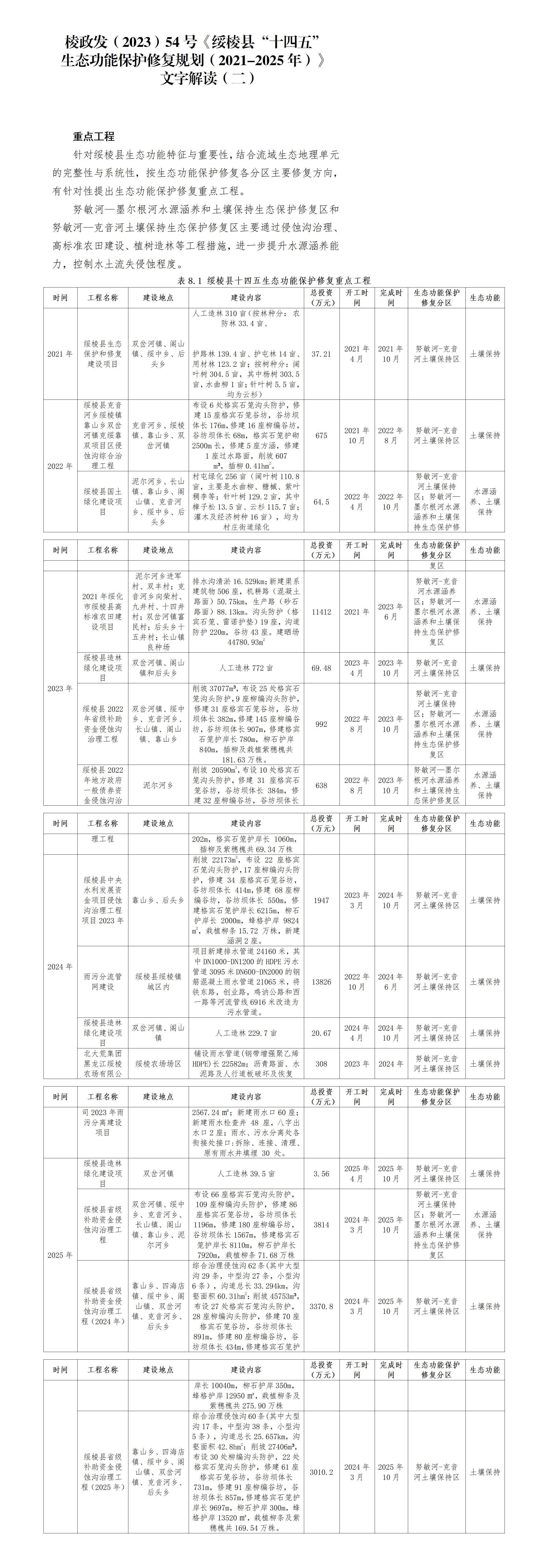 文字解读(二):《绥棱县“十四五”生态功能保护修复规划(2021-2025年)》