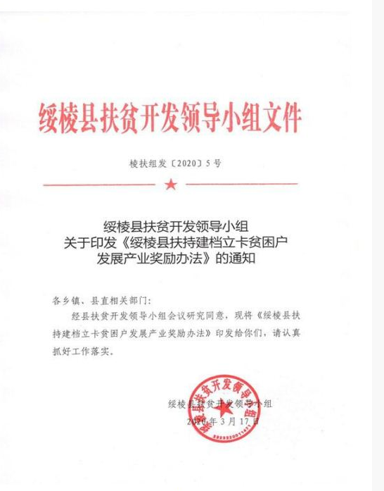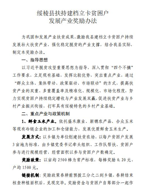 绥棱县扶持建档立卡贫困户发展产业奖励办法