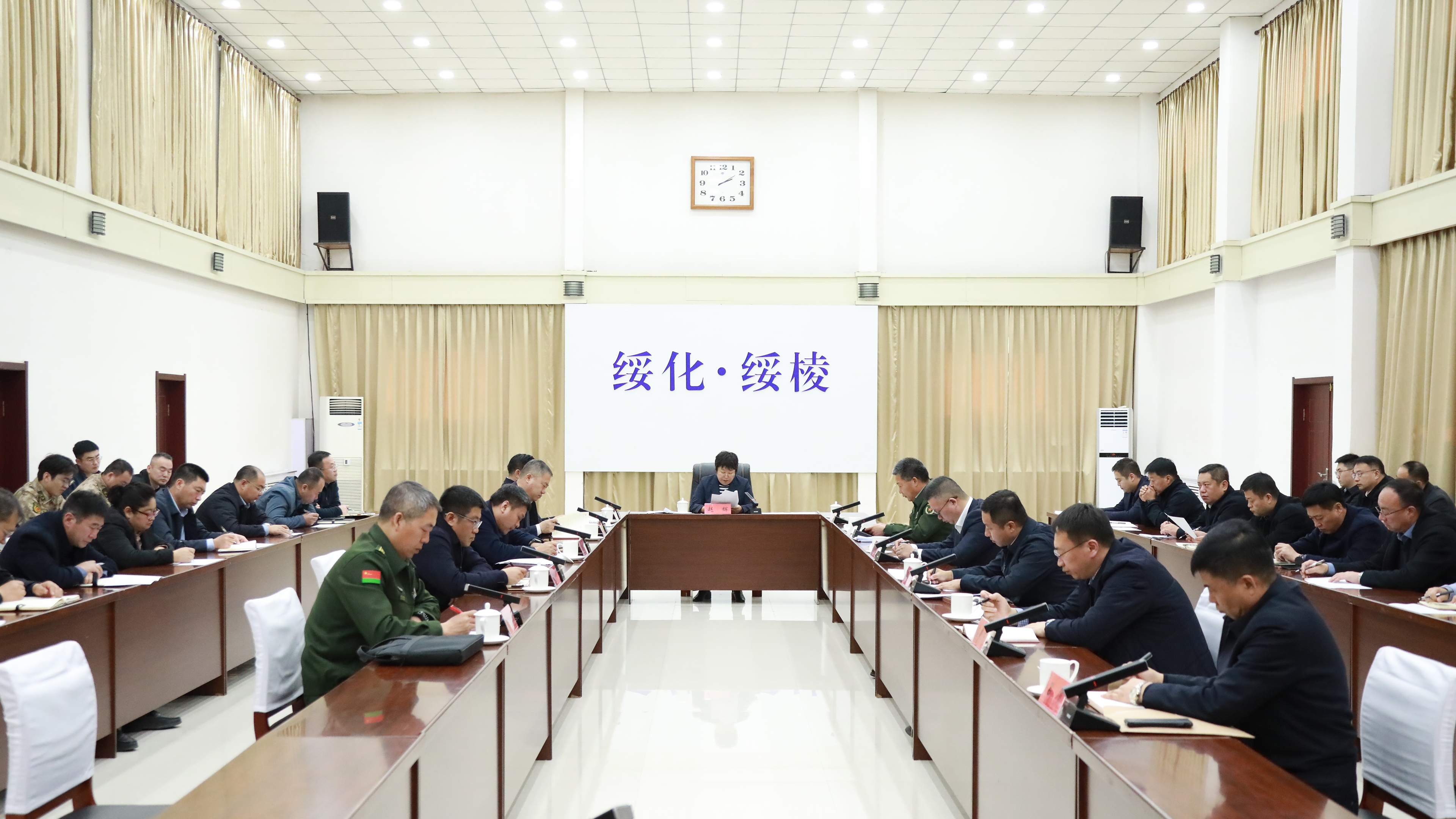 11月8日,县委书记、县人武部党委第一书记赵辉主持召开县委常委会议军会议。深入贯彻习近平强军思想,传达学习《中共中央关于坚持党管武装加强新时代人民武装工作的意见》精神,听取各乡镇党委书记党管武装工作述职和全县党管武装工作情况汇报,部署有关工作任务。徐野、徐付意、高红星、张郝峰、刘志宇、潘忠亮、张纪韬、盖晓东出席会议。杜金铭、陈峰伟、吕贺等列席会议。